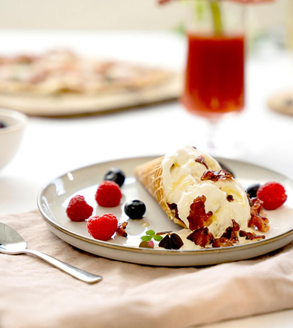 Äpplen är perfekt till höstsäsongen och smakar helt underbart vid den här tiden på året. Den syrliga smaken på äpplena leker bra med det söta och salta, och därför är denna kombination av det syrliga äpplet, den söta sirapen och det salta baconet i den här rätten helt underbar.