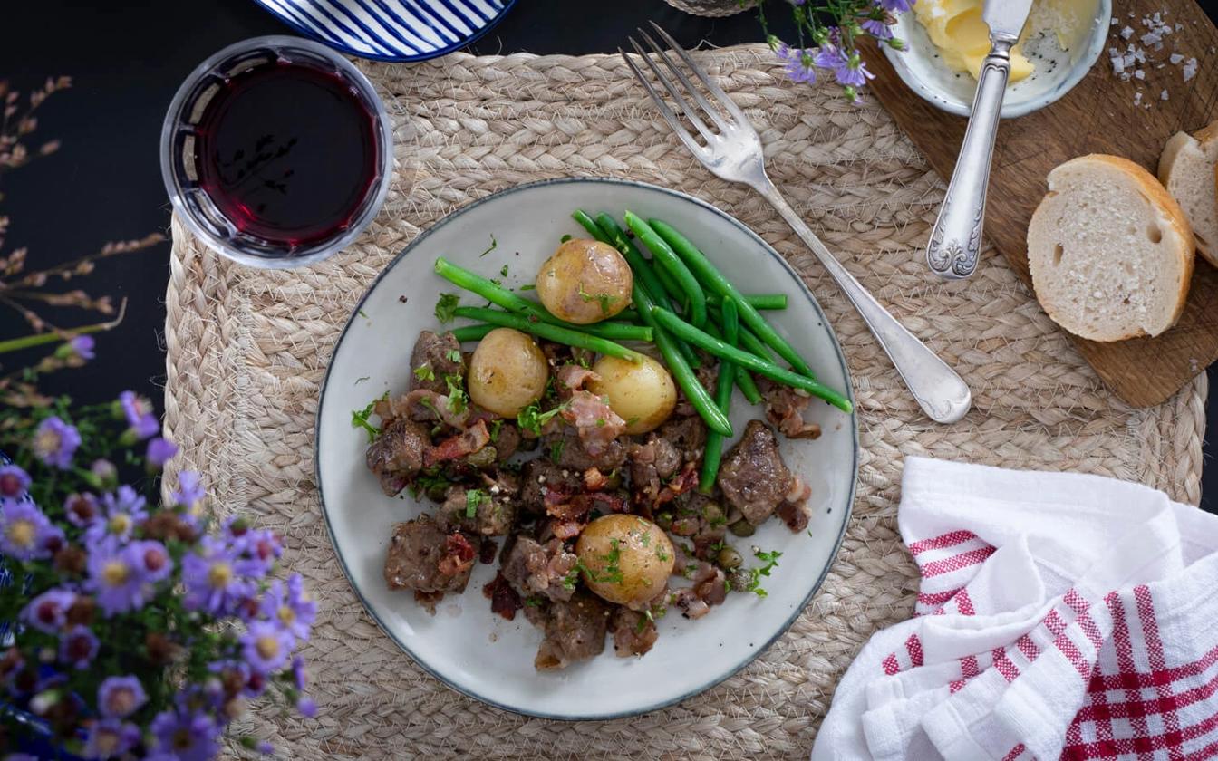Briljera i köket genom att laga vår levergryta med bacon! Det är inte alla som vågar sig på lever nu för tiden, men det är faktiskt en riktig delikatess. Tillsammans med salt bacon och knaprig kapris får du till en riktigt mustig och härlig gryta.