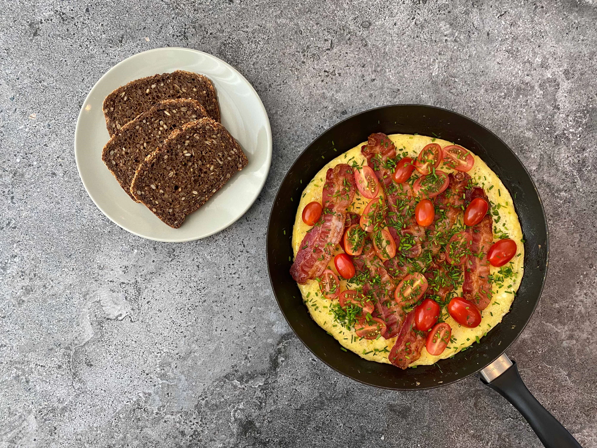 En god och lättlagad omelett som passar passar alla tider på dygnet. Till frukost, lunch, mellanmål eller kvällsmat. Du väljer själv när du är som mest sugen på omelett och bacon!