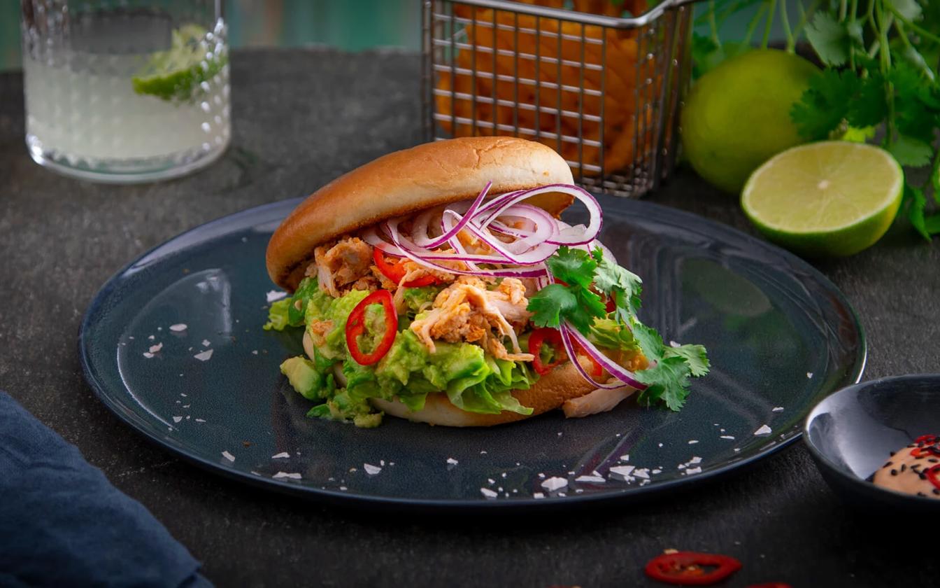Pulled chicken är en fantastisk ingrediens som passar utmärkt i en smakrik sandwich. I vårt recept på pulled chicken sandwich har vi använt vår färdiga pulled chicken och toppat med krispiga grönsaker och en krämig chilimajo. Perfekt för en snabb och lätt lunch eller middag.