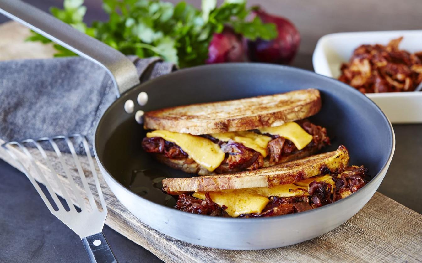 Vad sägs om en härlig macka med pulled pork? Vårt recept på surdegsmacka med pulled pork är både läckert och lättlagat. Den mjuka och luftiga surdegsmackan är fylld med massor av smakrik pulled pork, toppad med karamelliserad rödlök och cheddarost.