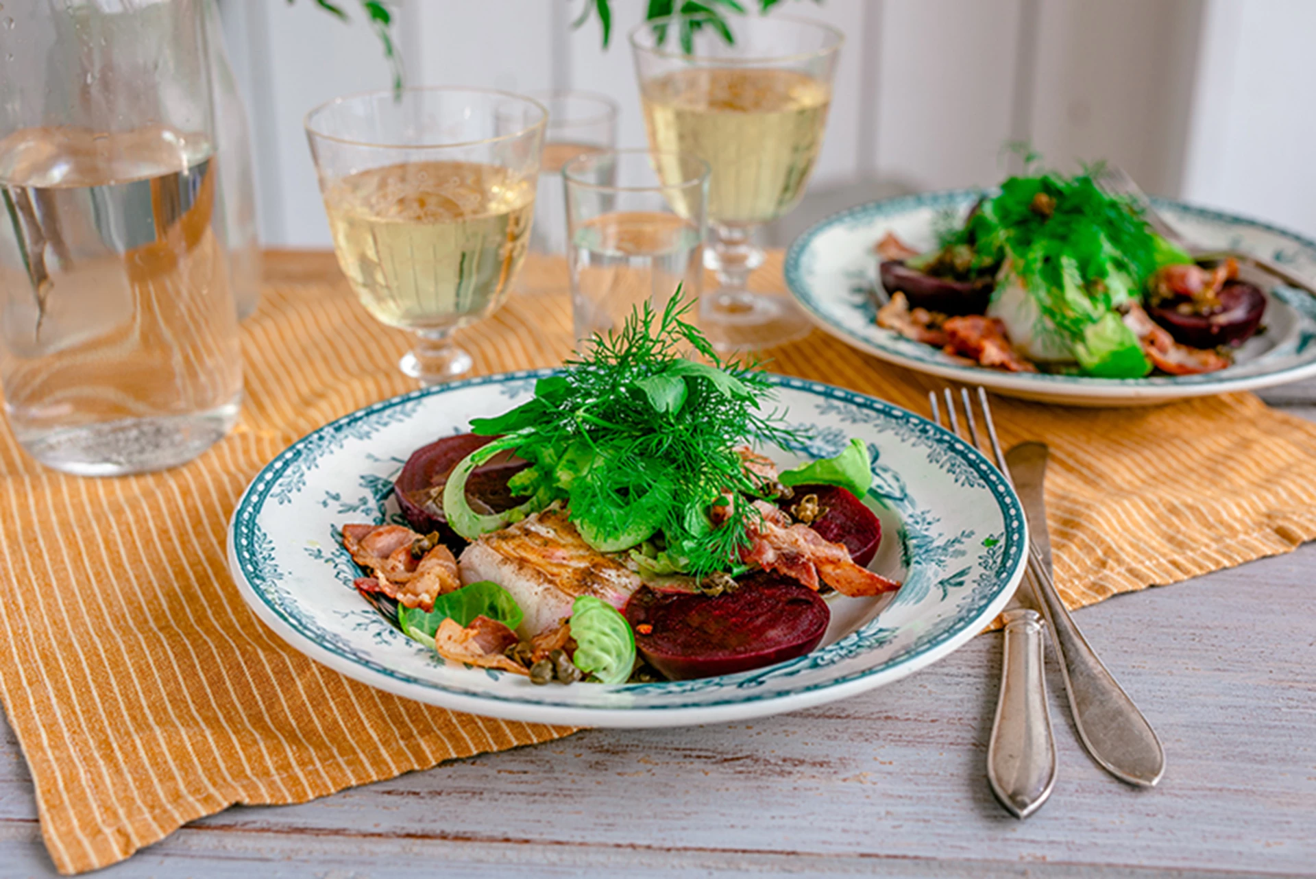 Enkelt recept på omelett med knaperstekt bacon och färsk gräslök
